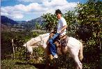| When you're in Copan, there's more to do than to visit the ruins. Rent a horse and a guide and ride up into the hills. Our guide took us to an inn overlooking the valley called Hacienda San Lucas for an excellent lunch. The staff is mostly Mayan, and very gracious. This would be a wonderful place to relax for a few days and feel as though you were very, very far from the rest of the world. In fact, if I ever disappear from the known world, I'll probably be hiding out at this hacienda. | |||