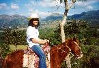 | When you're in Copan, there's more to do than to visit the ruins. Rent a horse and a guide and ride up into the hills. Our guide took us to an inn overlooking the valley called Hacienda San Lucas for an excellent lunch. The staff is mostly Mayan, and very gracious. This would be a wonderful place to relax for a few days and feel as though you were very, very far from the rest of the world. In fact, if I ever disappear from the known world, I'll probably be hiding out at this hacienda. | |||